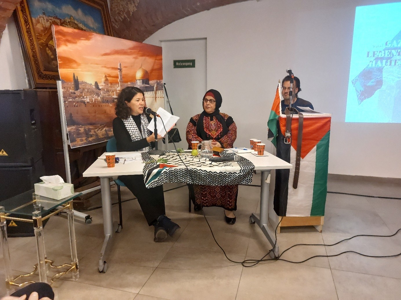 كما تخللت الفعاليات لإحياء المناسبة، قراءة مقتطفات من كتاب "إبقاء غزة حيّة" باللغة الألمانية، لمؤلف أوروبي يوثّق فيه ذكرياته خلال زياراته المتكررة لغزة منذ طفولته، برفقة عائلته الفلسطينية.
