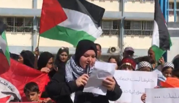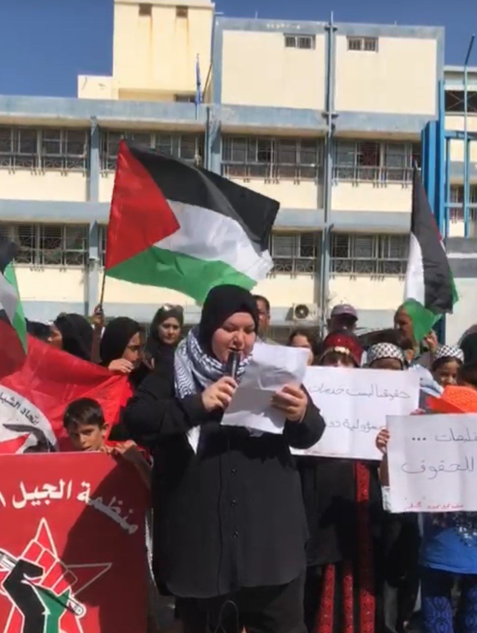 وخلال الاعتصام، ألقيت كلمة باسم الطلاب المعتصمين، حذّرت من أنّ التعليم في مدارس "أونروا" يمرّ بأخطر مرحلة منذ عقود، معتبرة أنّ المساس بحق التعليم يشكّل استهدافاً مباشراً للقضية الفلسطينية ومستقبل الأجيال القادمة، ومؤكدةً أنّ التعليم كان دوماً السلاح الأقوى لشعبنا في معركته من أجل الحرية والعودة.