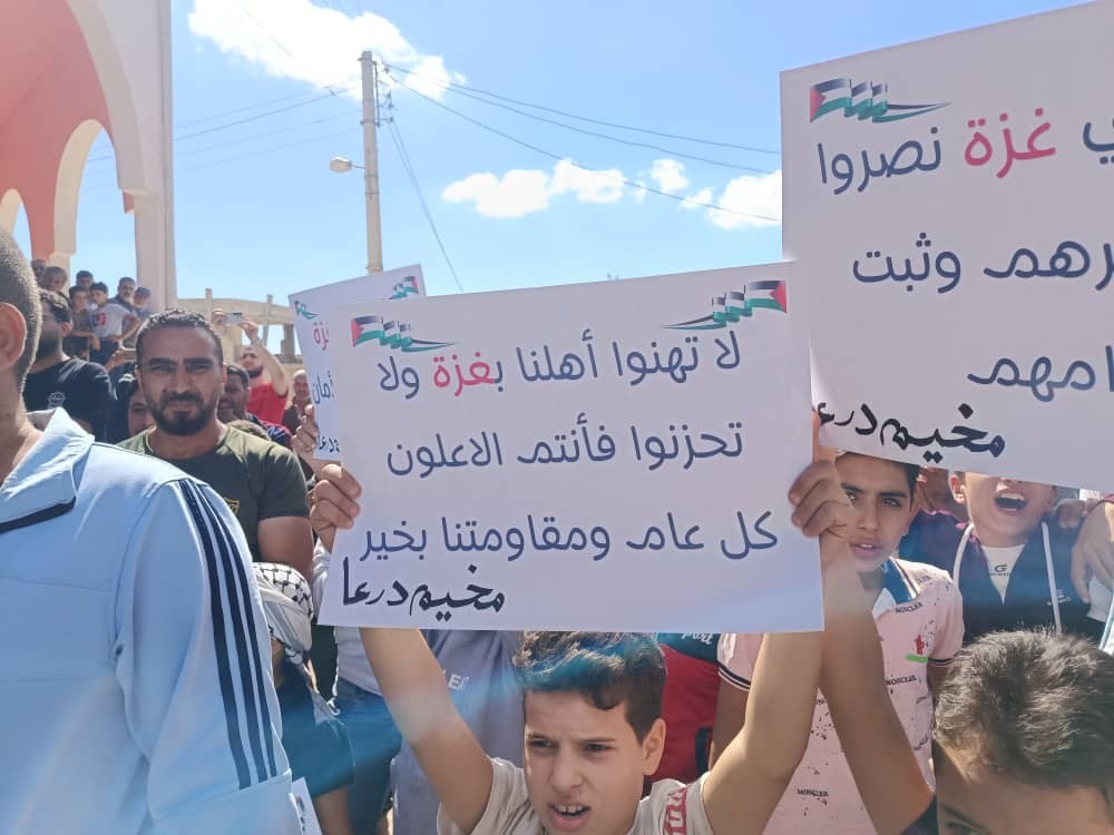 جانب من مسيرة خرجت في #مخيم_درعا للاجئين الفلسطينيين جنوبي #سوريا بعد ظهر اليوم تهتف لقطاع #غزة تزامناً معسريان اتفاق وقف إطلاق النار pic.twitter.com/OalnXdrzly