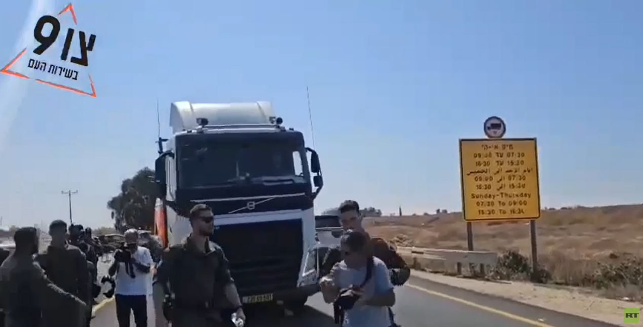 مستوطنون يعترضون طريق شاحنات الإغاثة إلى غزة