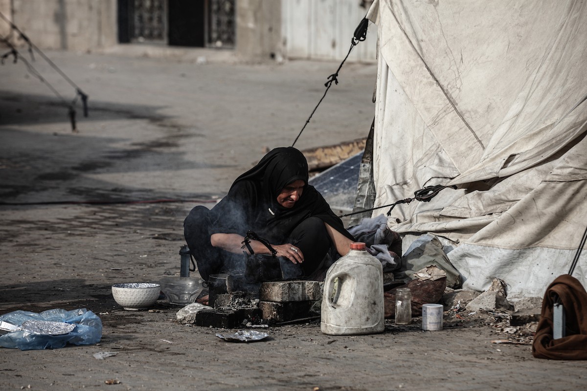 إحدى السيدات الفلسطينيات نيفين وهي أم لأربعة أيتام والتي فقدت زوجها قبل عامين تصف ما تعيشه قائلة: "أعيش أوضاعًا صعبة داخل الخيام، نعاني من الحشرات وصعوبة الحصول على المياه، ونطهو على النار بين الخيام، أنا مريضة كلى، وأبنائي توقفت دراستهم بسبب الحرب... نتمنى فقط أن تعود الأيام كما كانت".