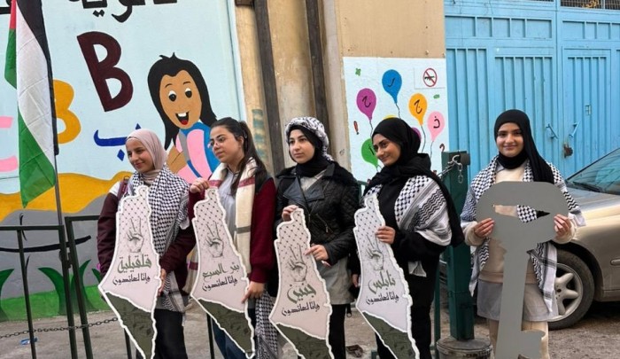 الوقفة جاءت عقب حادثة منعت فيها إدارة المدرسة إحدى الطالبات من ارتداء كنزة تحمل رمزاً وطنياً مرتبطاً بالكوفية، ما أثار استياء الطلاب الذين قرروا الرد بخطوة جماعية تؤكد تمسّكهم بهويتهم.
