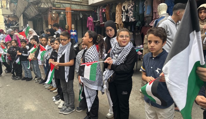 وأضاف: "من هنا من مخيم البداوي نوصل رسالة إلى أهلنا في غزة والضفة وكل فلسطين: إنا على العهد باقون.. ومن شارع الشهداء نقول لن نقبل إلا بفلسطين كاملة"