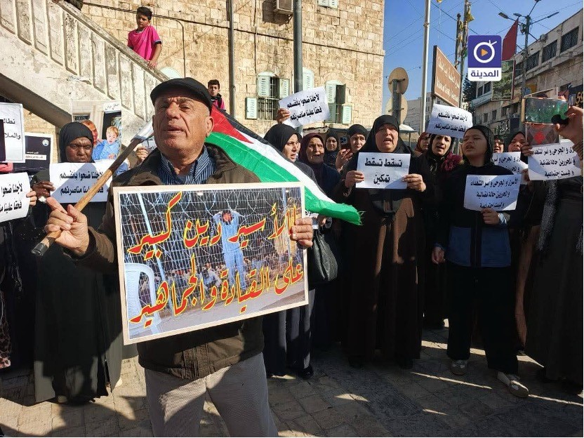 نظم أهالي الأسرى والجرحى ممن قطعت رواتبهم وقفة احتجاجية في مدينة طولكرم شمالي الضفة الغربية، للمطالبة بمستحقات أبنائهم، عقب ضغوط من حكومة الاحتلال على السلطة الفلسطينية لقطع رواتب الأسرى وأسر الشهداء والجرحى الفلسطينيين.