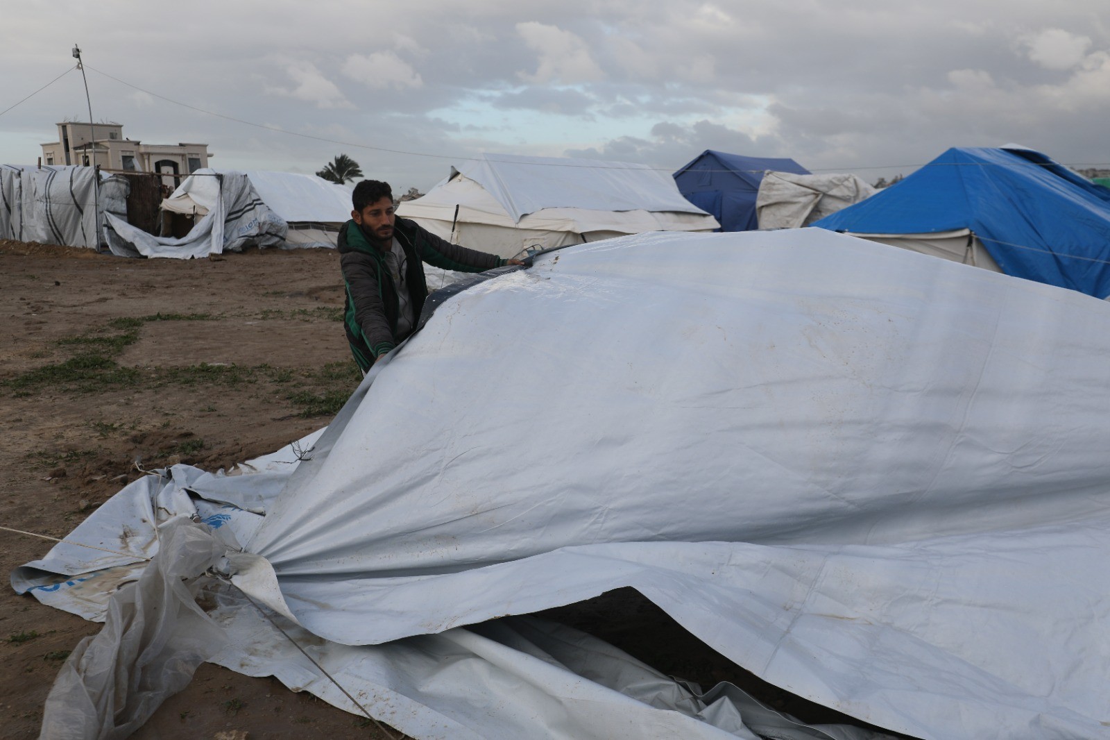 وتصاعدت التحذيرات الفلسطينية والأممية من أخطار المنخفض الجوي الجديد القادم على الأراضي الفلسطينية في ظل الأوضاع المأساوية التي يعيشها النازحون في الخيام المتهالكة، وعلى أنقاض المنازل المدمرة بفعل العدوان.