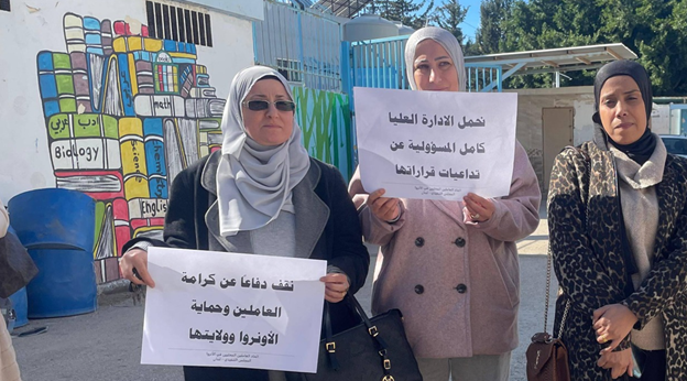أعلن اتحاد المعلمين لدى وكالة غوث وتشغيل اللاجئين الفلسطينيين "أونروا" في لبنان تبنّيه الكامل لمسار التصعيد النقابي، في إطار الحراك المتواصل ضد قرارات إدارة الوكالة القاضية بتخفيض ساعات العمل وما يترتب عليها من انتقاص مباشر من رواتب الموظفين وحقوقهم المكتسبة، وما تحمله من "انعكاسات خطيرة" على العملية التعليمية والخدمات المقدّمة للاجئين الفلسطينيين.