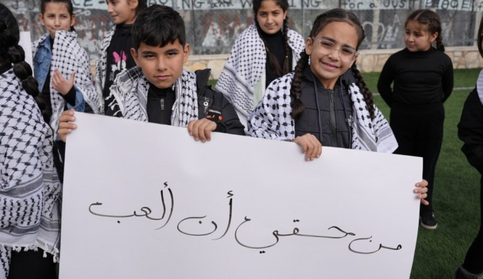 شارك عشرات الأطفال في مخيم عايدة بمدينة بيت لحم في فعالية حقوقية، عبّروا خلالها عن رفضهم قرار هدم ملعب المخيم الذي يشكّل مساحة أساسية لممارسة الأنشطة الثقافية والرياضية، وذلك عقب إخطار من سلطات الاحتلال بهدمه خلال أيام.
