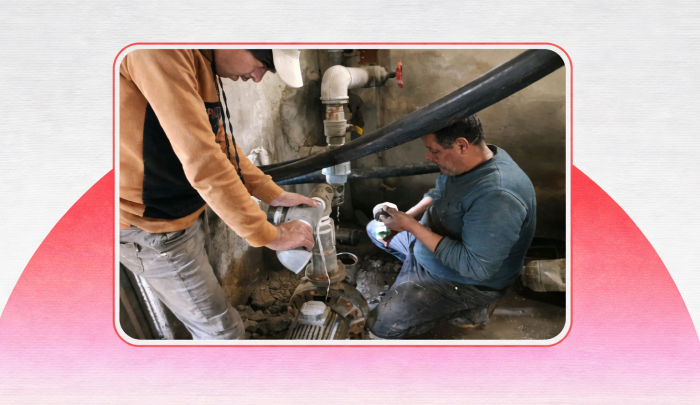 وبدأت ورشة الصيانة، يوم أمس الأحد 1 شباط/فبراير، أعمالها بإصلاح وتركيب ثلاث "سكورات" تابعة لخزان المياه الواقع في ساحة جامع صلاح الدين الأيوبي، وذلك في إطار السعي إلى تحقيق نظام المداورة وتقسيم المخيم القديم إلى ثلاثة قطاعات، بما يضمن عدالة توزيع المياه بين السكان.