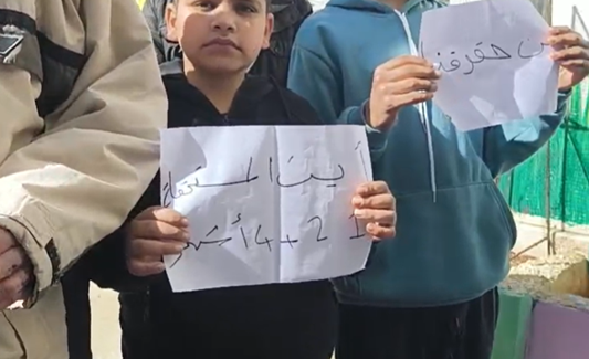 وألقى الناشط سيف جميل، خلال الوقفة، نص مذكرة تمّ تقديمها لمدير المخيم، أكدت على وحدة الموقف وضرورة الاستمرار في التحرك حتى تحقيق المطالب.