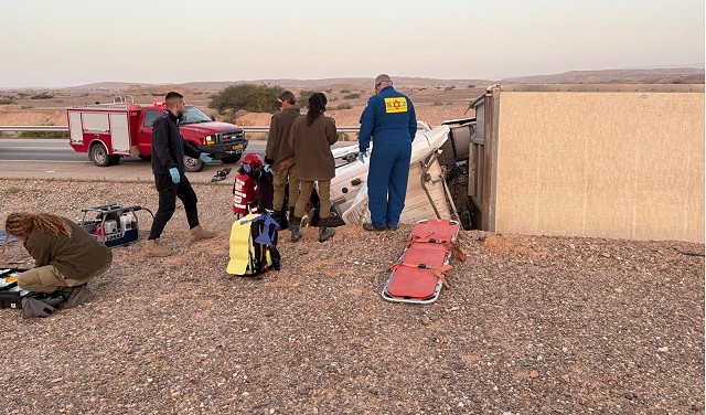 وفي حادث منفصل، أُصيب رجل في الأربعينيات من عمره بجروح خطيرة إثر انقلاب شاحنة على شارع 90 في منطقة النقب.