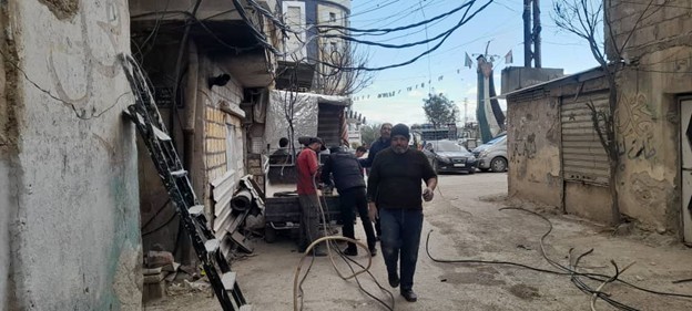 بادر عدد من أبناء الحي الشمالنة في مخيم السيدة زينب بريف العاصمة السورية دمشق، بالتنسيق مع لجنة التنمية المجتمعية، إلى إصلاح كبل كهرباء معطل منذ فترة طويلة، في خطوة لاقت ترحيباً واسعاً بين الأهالي، وذلك في ظل التدهور الحاد في الخدمات الأساسية داخل تجمع السيدة زينب للاجئين الفلسطينيين.
