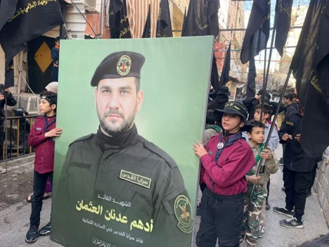 شهد مخيم عين الحلوة للاجئين الفلسطينيين، اليوم الثلاثاء 3 آذار/ مارس، مراسم تشييع القيادي الفلسطيني أدهم عدنان العثمان، الذي استشهد في عملية اغتيال "إسرائيلية" ضمن غارة نفذها الاحتلال على الضاحية الجنوبية لبيروت فجر أمس الاثنين.