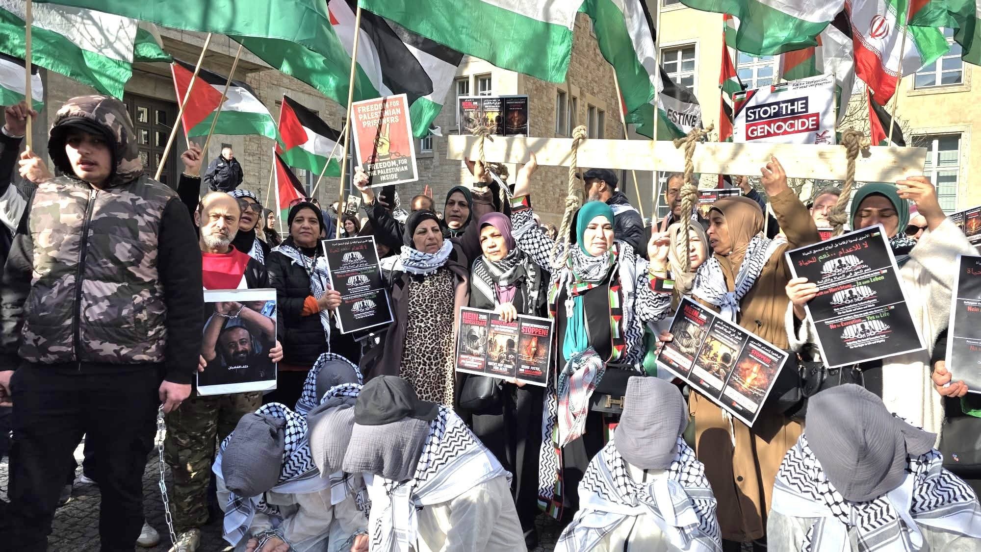شهدت العاصمة الألمانية برلين أمس الأربعاء، مظاهرة حاشدة بمشاركة العشرات من الفلسطينيين والمتضامنين احتجاجاً على القانون الذي أقرّه "الكنيست الإسرائيلي" والذي يشرع إعدام الأسرى الفلسطينيين حيث يدخل حيز التنفيذ خلال ثلاثين يوماً في خطوة اعتبرها المشاركون تصعيدًا خطيرًا وانتهاكًا صارخًا للقانون الدولي.