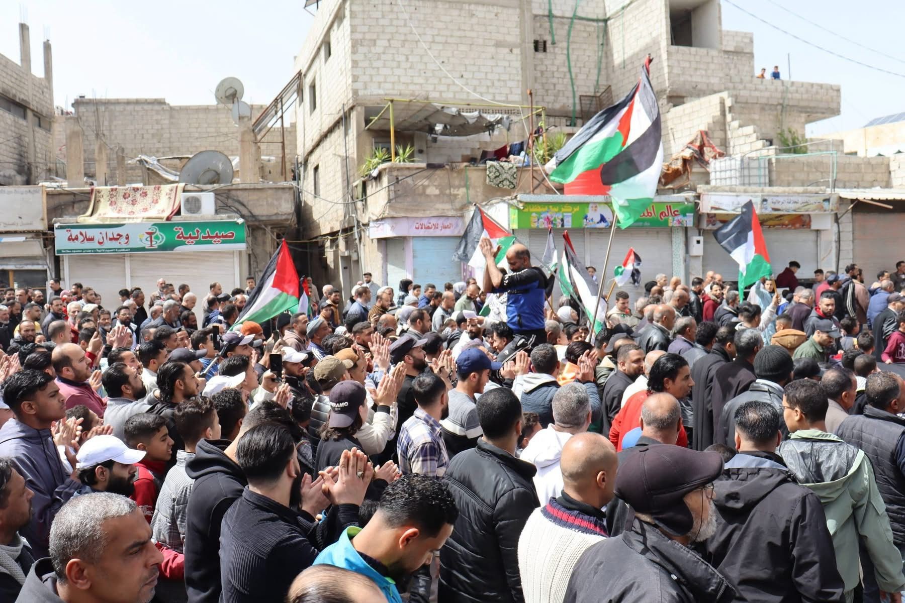 شهدت المخيمات الفلسطينية في سوريا، اليوم الجمعة، ٣ نيسان/ أبريل، موجة واسعة من التظاهرات والوقفات الشعبية الحاشدة، استجابة لدعوات "جمعة الغضب"، رفضًا لقانون إعدام الأسرى الذي أقره كنيست الاحتلال، وتضامنًا مع الأسرى الفلسطينيين في سجون الاحتلال، بالتوازي مع دعوات لنصرة قطاع غزة والدفاع عن المسجد الأقصى